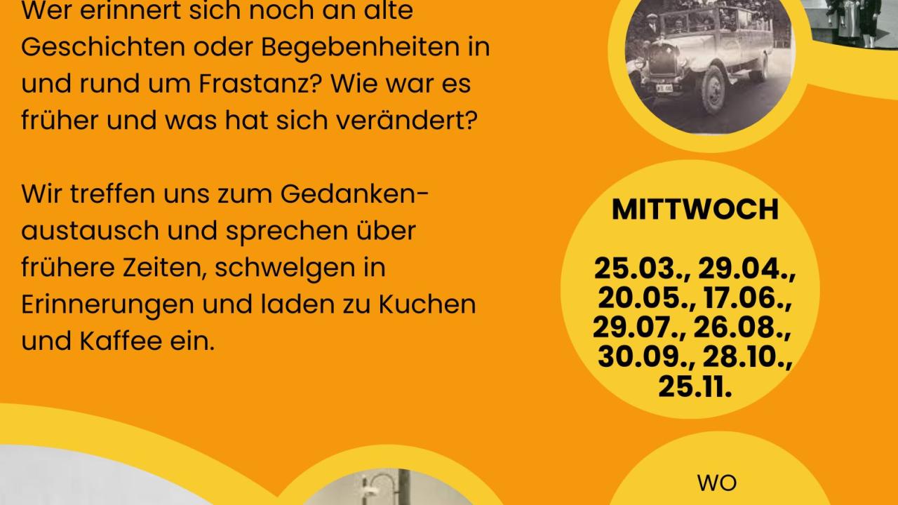 Hast du Erinnerungen an früher? Möchtest du uns ein paar vergangene Begebenheiten erzählen und deine Gedanken mit uns teilen? Dann nimm an unserer Veranstaltung teil. An mehreren Terminen treffen w