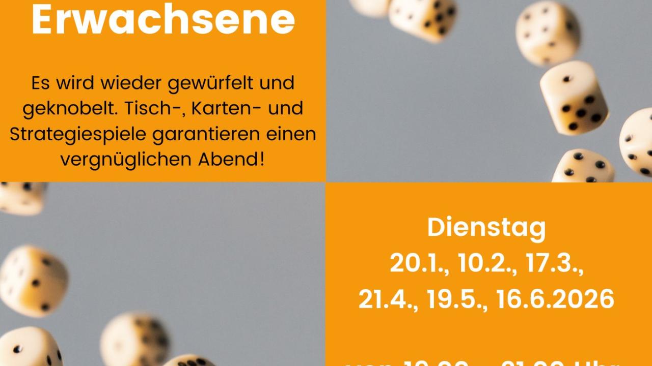 18.12.2025 - 16.06.2026 Spieleabende 1. Halbjahr 2026 Spieleabend jeweils Dienstag, 20.1., 10.2., 17.3., 21.4., 19.5., und 16.6.2026 19:00 - 21:00 Uhr